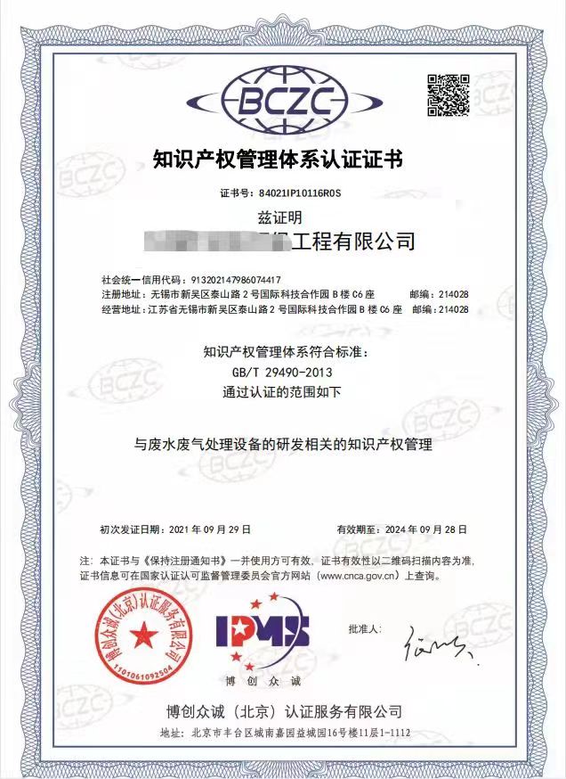 GBT 29490知识产权管理体系认证证书